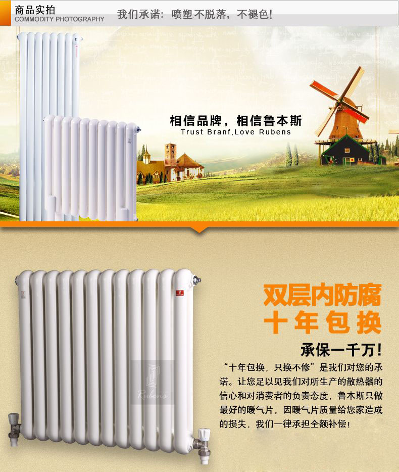 暖氣片以外的主流采暖用暖氣片,在零售和工程市場(chǎng)廣泛應(yīng)用。為了讓廣大顧客更好地選購(gòu)這兩種暖氣片,行業(yè)協(xié)會(huì)評(píng)選的用戶(hù)和經(jīng)銷(xiāo)商信賴(lài)的中國(guó)暖氣片大品牌,鋼制暖氣片、銅鋁復(fù)合暖氣片和鑄鐵暖氣片生產(chǎn)廠(chǎng)家先進(jìn)品牌----魯本斯暖氣片的專(zhuān)業(yè)人士對(duì)鋼制暖氣片與銅鋁復(fù)合暖氣片進(jìn)行全方面的綜合比較。