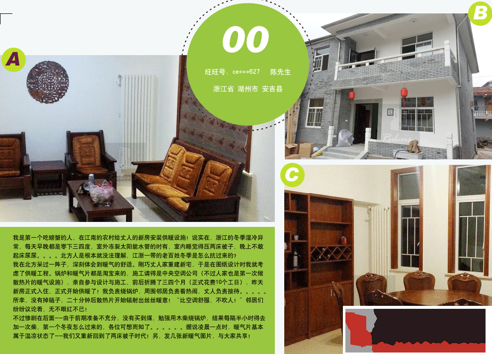 我是個(gè)吃螃蟹的人,在江南的農(nóng)村給丈人的新房安裝供暖設(shè)施!說實(shí)在,浙江的冬季濕冷異常,每天早晚都是零下三四度,室外凍裂太陽能水管的時(shí)有,室內(nèi)睡覺得壓兩床被子,晚上不敢起床尿尿。。。。北方人是根本就沒法理解,江浙一帶的老百姓冬季是怎么抗過來的?