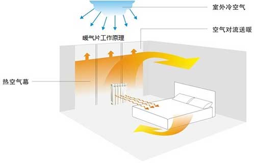 暖氣的工作原理就是加熱空氣,如果避免上面的問題呢?就是把暖氣片放置在窗口,門口之類的冷空氣容易進(jìn)屋的位置.冷空氣一進(jìn)來就被暖氣片加熱成熱空氣.熱空氣上升與屋子的冷空氣形成對流.冷空氣又循環(huán)到暖氣附近被加熱成熱空氣.熱空氣在屋里循環(huán),房間就暖和了.