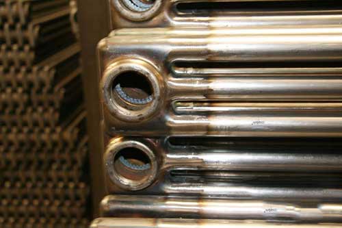 暖氣片廠家在大力宣傳其散熱器產(chǎn)品“沒有焊縫、內(nèi)腔潔凈光滑”等等—其實(shí)這對(duì)于暖氣片的抗腐蝕并不能起到作用!因?yàn)殇撝婆瘹馄母g均不是發(fā)生在焊縫上,這是由鋼制暖氣片的腐蝕原理氧腐蝕決定的,所以“沒有焊縫或內(nèi)腔光滑不等于就沒有腐蝕”。